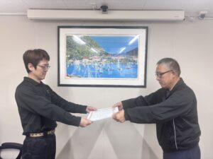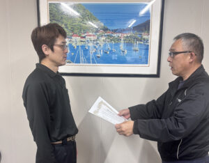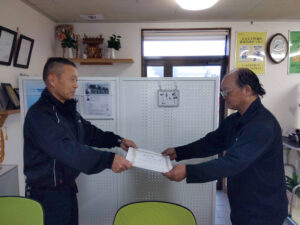 長年にわたり勤め続けて会社の業績発展に寄与した功績を讃え、感謝する、